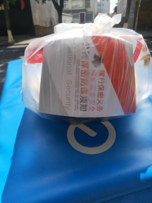 图1和图2:与“饿了么”联合,发放保密宣传资料