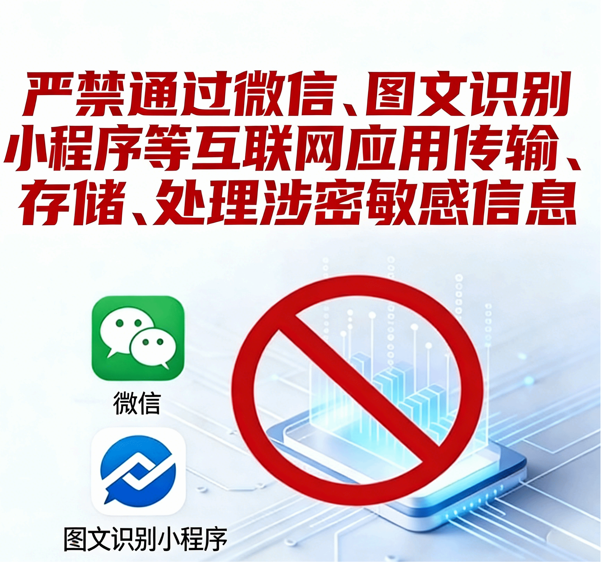 警惕工具风险:不使用“传图识字”“扫描王”等微信小程序或APP处理国家秘密和工作秘密文件,严防敏感信息外泄。