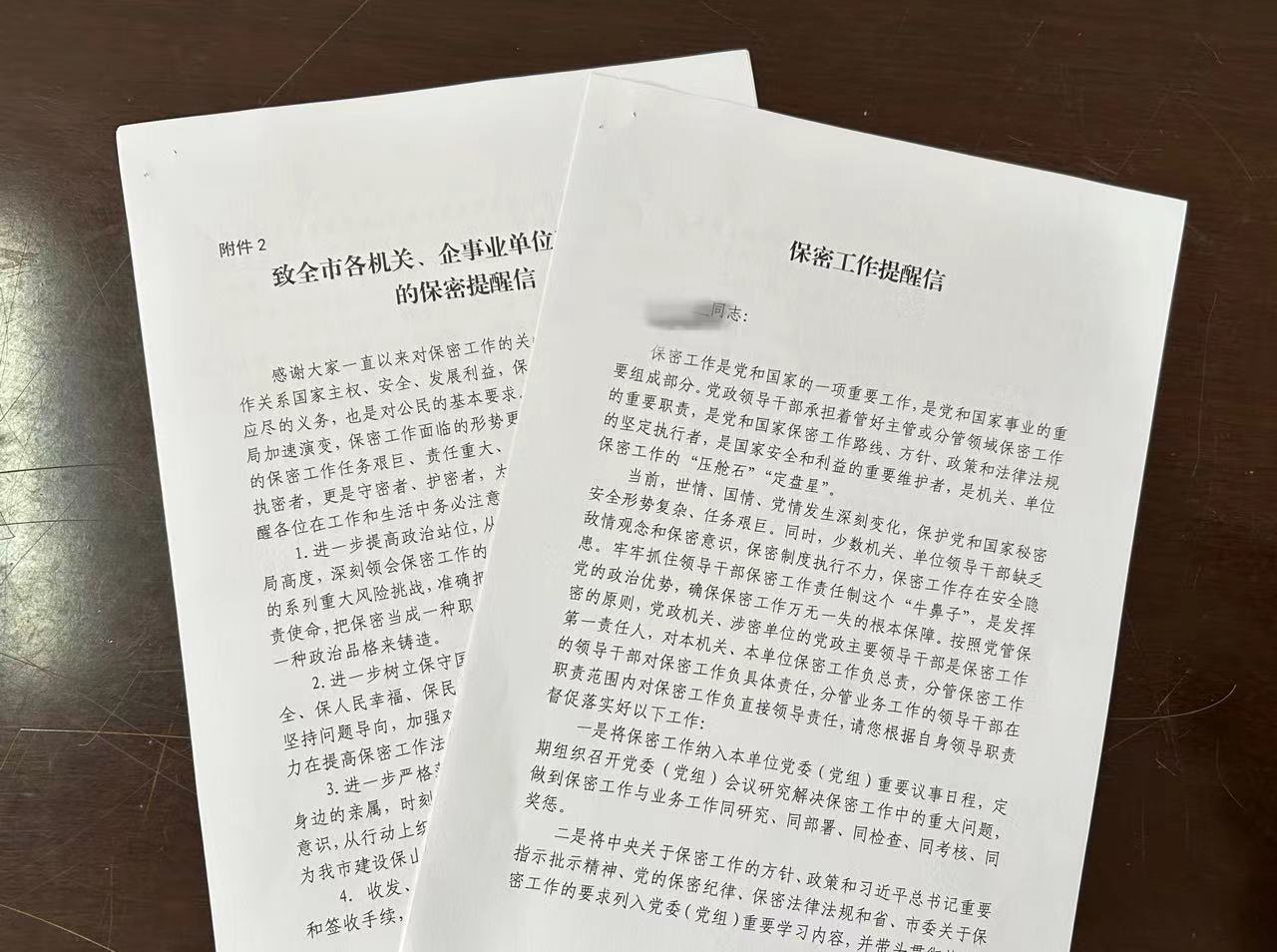 为深入贯彻总体国家安全观,提高机关干部的保密工作能力和水平,年初,市委保密办向全市领导干部和干部职工发送“保密提醒信”54263份,其中处级及以上领导1184份全部收到回执;走进各机关、企事业单位开展点对点保密知识培训,仅今年以来就累计为10余个机关单位科普保密知识,讲解保密工作技能,在促进全市保密工作水平提升的同时,筑牢了广大机关干部心中的国家安全意识。