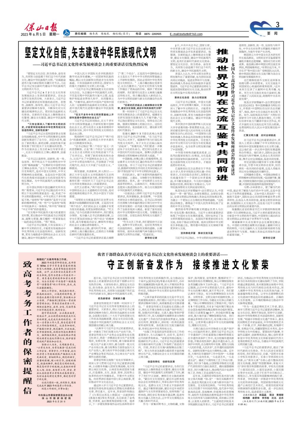 抓实教育培训。将传统宣传与新媒体阵地有机结合,开展多层次、立体化、全方位的宣传学习活动,在保山市国家保密局网站、微信公众号、保山新闻网、保山日报社、保山发布、保山融媒抖音平台上发布《致高考考务工作者的保密提醒信》。同时做好涉考人员保密教育培训,强化涉考人员保密意识,指导监督全市考务工作人员签订保密承诺书,明确保密纪律,落实保密责任,确保涉考人员保密管理到位。