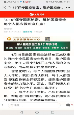 联合助力,提高热度。各县(市、区)结合疫情防控,创新方式、联合助力,营造出“保密意识人人有,保密法规人人守”的良好氛围。