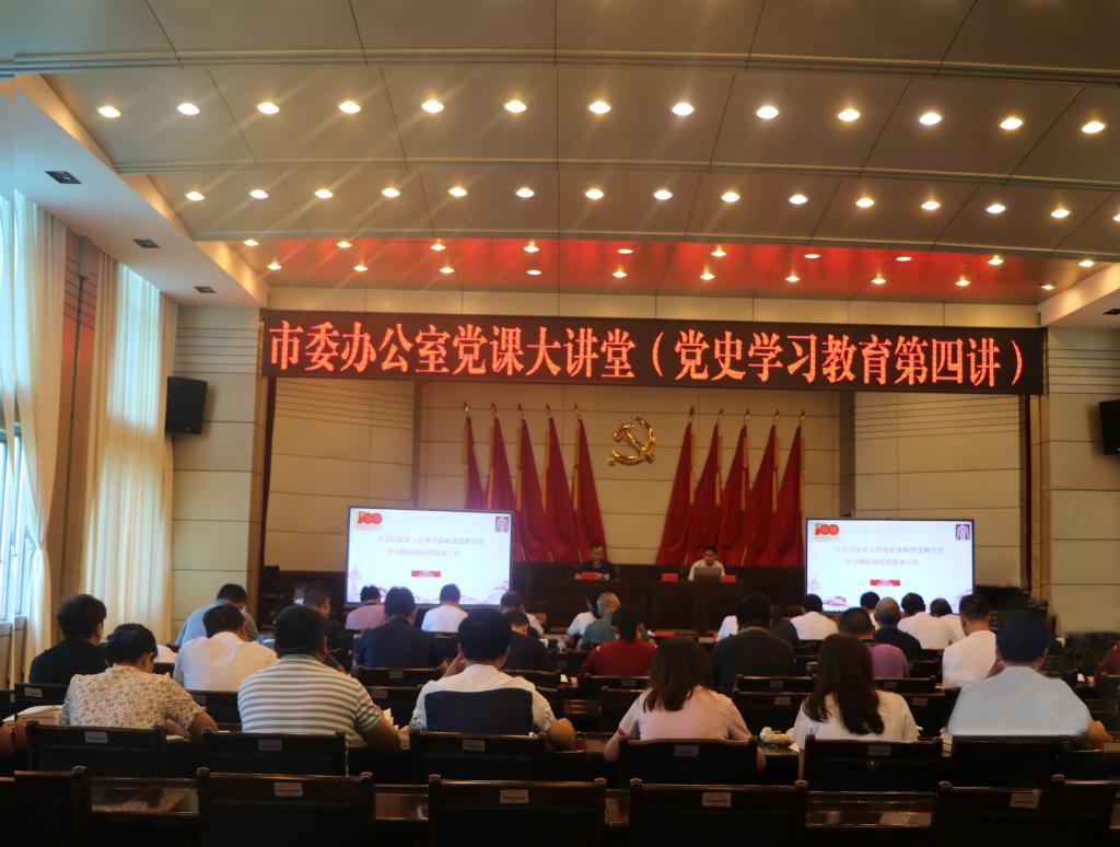 6月21日,市委办公室党课大讲堂上,市委办公室副主任、市委保密办专职副主任石明江同志结合保密工作发展史,融合红色保密事迹,为市委全体干部职工生动地讲授了题为《从党的保密工作史中汲取智慧和力量全力做好新时代保密工作》的党史教育课。