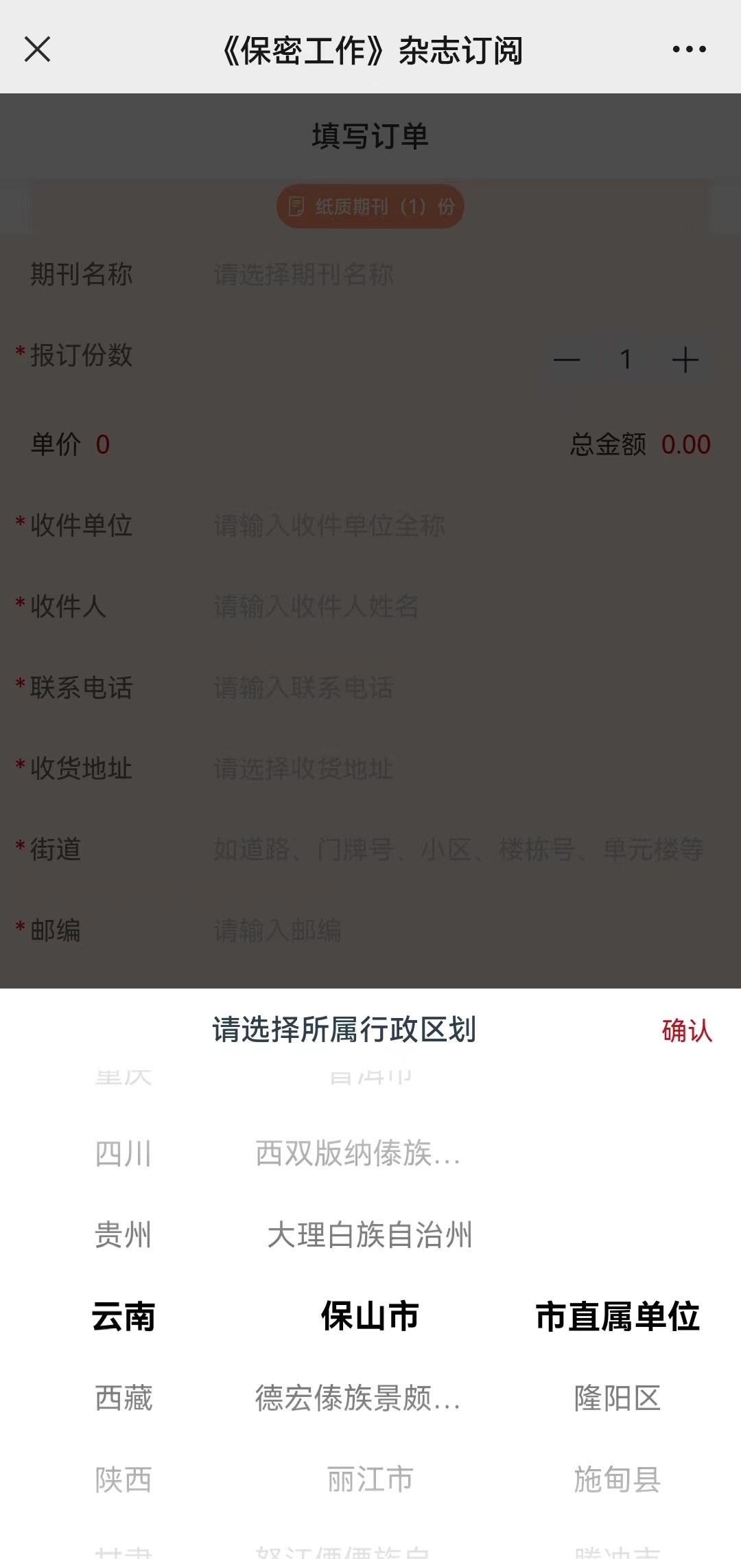 ②所属行政区与收件地址无影响,征订过程中请正确填写所属行政区,便于后期数据统计上报。