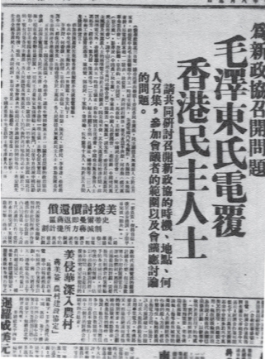 1948年8月,毛泽东为召开新政协会议电复在香港的民主人士,图为当时香港《华商报》刊载的消息。