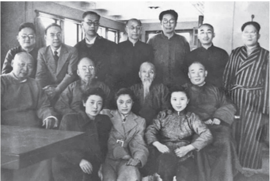 1949年2月28日,叶圣陶(后排右二)、马寅初(中排右一)、柳亚子(中排右三)、郑振铎(后排右三)等由香港北上赴解放后的北平,参加中国人民政治协商会议。图为在轮船上合影。